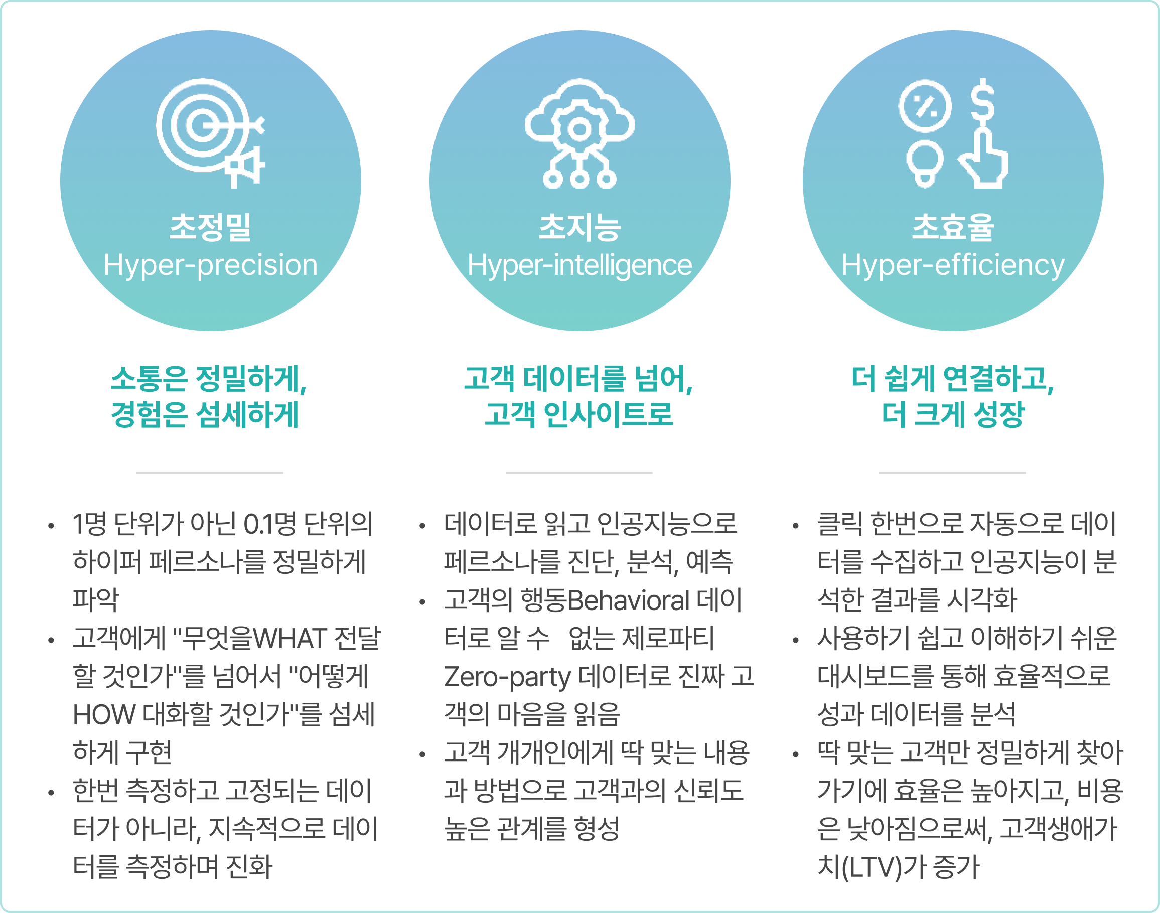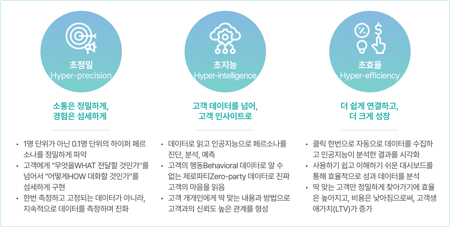 ① 제로-파티∙페르소나 데이터 기반 AI 초개인화 솔루션 제공